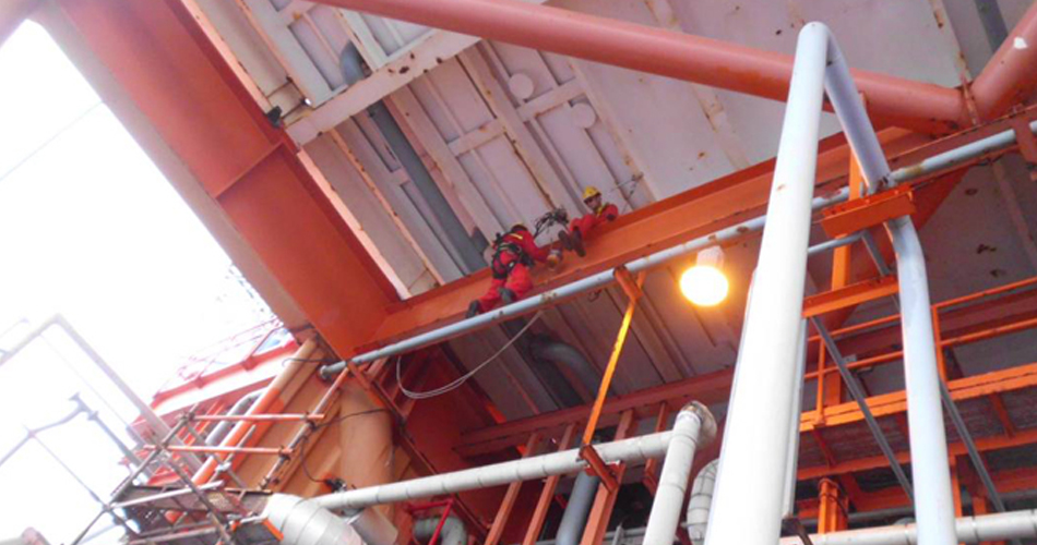 采用国际工业高空绳索技术的飞溅区维修、保养